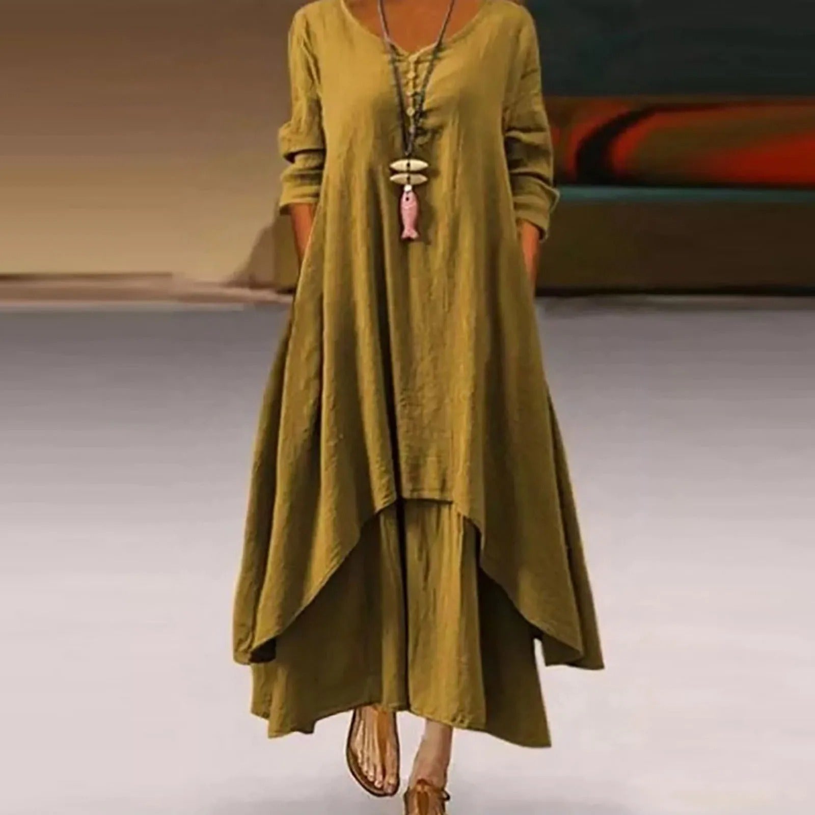 LD Meerlagige vloeiende midi-jurk